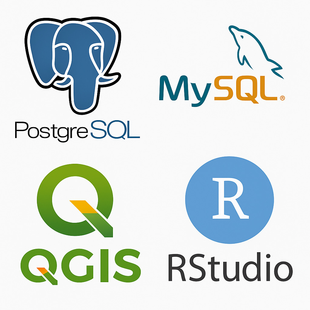 Utilizar ferramentas como MySQL, PostgreSQL, QGIS e R